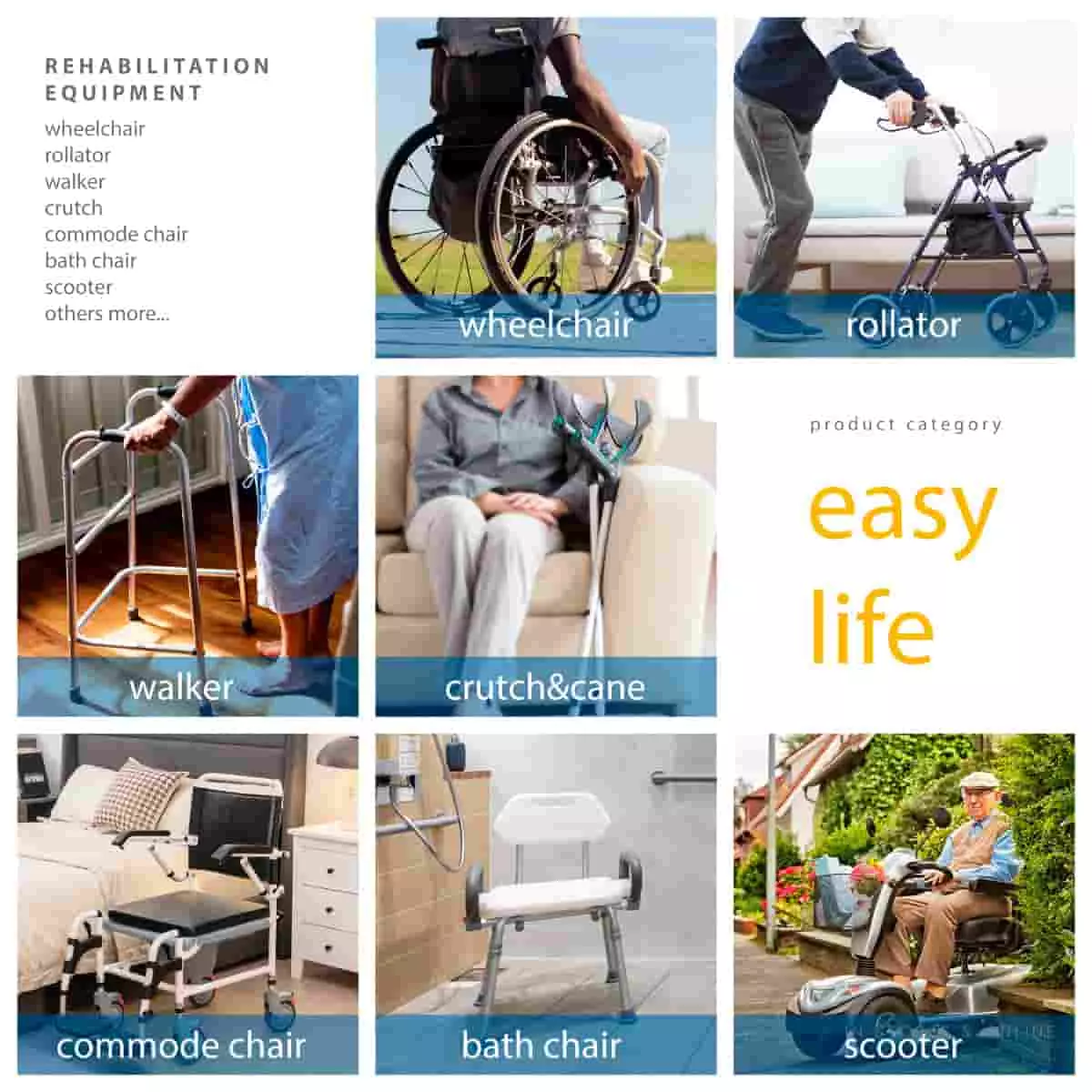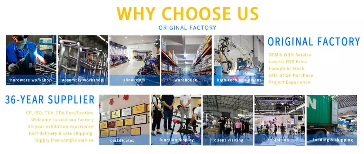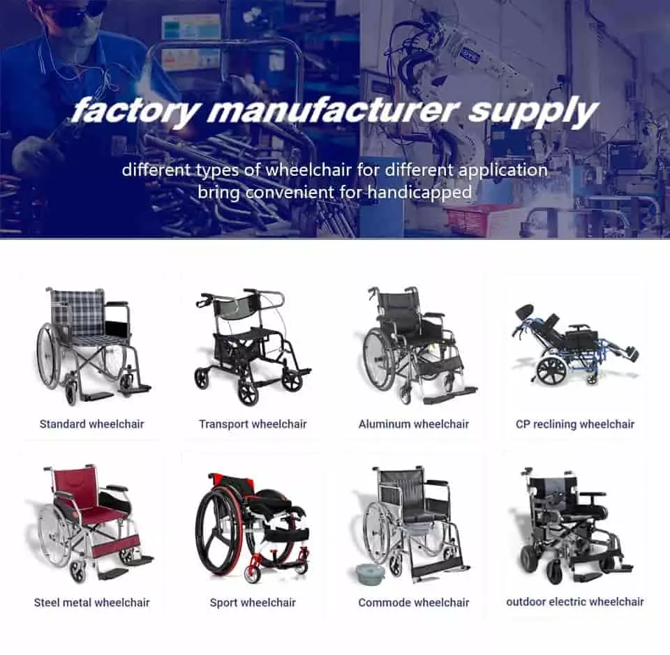 tiekia OEM ir ODM produktus, tokius kaip mes Steel vežimėlis, Aliuminio vežimėlis, Papatinis invalido vežimėlis, Walker, Crievė, Walker Rollators, Commode kėdė, Dušo kėdė,ligoninės lova, motoroleris, robotas ir kiti medicininės reabilitacijos įrenginiai,